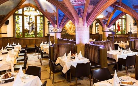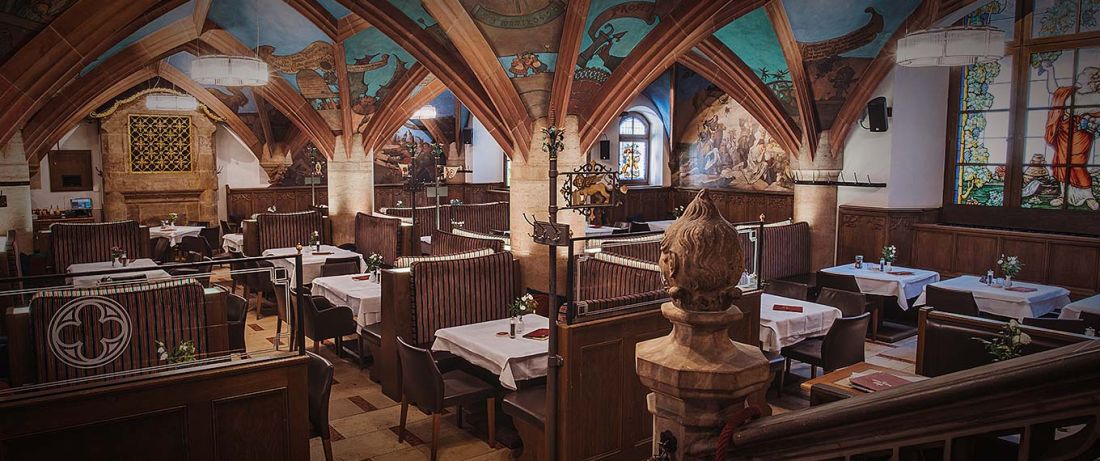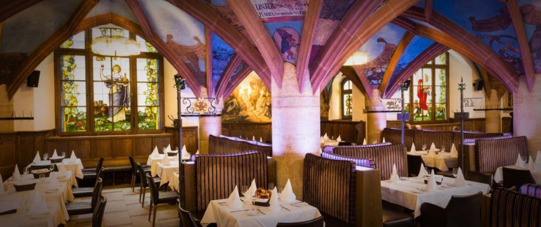 Der Kunstmaler Heinrich Schlitt hatte bei der Gestaltung der naiven Darstellungen viel Humor bewiesen. Georg von Hauberisser, der von der damaligen Verwaltung und den Ratsherren beauftragte Architekt und Baumeister, entwarf auch die Einrichtung des Ratskellers, dem romantischen Zeitgeist entsprechend im Stile der Gotik des XVI. Jahrhunderts.