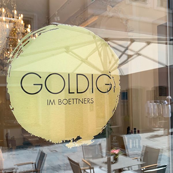 Es ist ein großer Name: Das Boettners, anno 1901 gegründet, galt als eines der feinsten Restaurants der Stadt. Noch heute erinnern die üppigen Stuckdecken mit den prächtigen Kronleuchtern an längst vergangene Zeiten. Seit Sommer 2020 weht ein sympathisch frischer Wind im traditionsreichen Restaurant, das achtsam modernisiert wurde – mit warmen Holztönen, urbanem Chic, ausgesuchten Accessoires und auch ein wenig goldenem Glanz. Jetzt heißt das hübsche Lokal am Platzl Goldig im Boettners. Serviert wird mediterrane, vor allem italienische Küche, mal klassisch, mal neu interpretiert. Ausgesuchte Weine runden den kulinarischen Genuss ab. An der Bar gibt es Cappuccino oder auch perlenden Champagner – bei schönem Wetter auch draußen auf der schönen Terrasse.