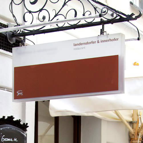 In diesem Restaurant kommt Haute Cuisine auf die Teller, doch mit einem eher steifen Feinschmeckertempel hat das Landersdorfer & Innerhofer nichts gemein. Küchenkunst kommt hier locker und spontan daher. Mittags kann man aus leichten und kreativen Gerichten à la carte wählen oder sich vom täglich wechselnden Lunch-Menü überraschen lassen. Abends gibt es keine Speisekarte. Was das tägliche Menü jeweils zu bieten hat, hängt auch davon ab, was der meisterhaft kochende Teil des Duos Landersdorfer & Innerhofer frühmorgens auf dem Markt bekommen hat. Während der eine am Herd steht, kümmert sich andere um die Gäste, im Besonderen auch um die Weinauswahl. Diese hat einiges zu bieten: Im Keller des Restaurants lagern knapp 500 ausgesuchte Positionen.