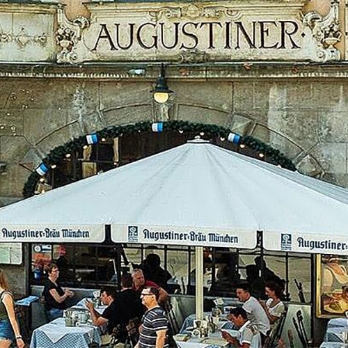 Die Geschichte des ersten Augustiner Stammhauses reicht zurück bis zum Ende des 13. Jahrhunderts – exakt zum 4. Mai 1294, als an der „Neuhauser Gasse“ der Grundstein für das Augustiner Kloster auf dem Haberfelde gelegt wurde. Urkundlich verbrieft ist, dass dort 1328 Mönche bereits ein Brauhaus betrieben. An diesem historischen Standort wird Tradition hochgehalten: Im Augustiner Stammhaus in der Münchner Fußgängerzone wird echte bayerische Wirtshauskultur gepflegt. Beste Schmankerl (auch aus eigener Metzgerei) kommen auf die Teller. Die große traditionsreiche Einkehr bietet neben dem Restaurant und der Bierhalle mit historischen Bildern und Wandfresken unter anderem einen gemütlichen Arkadengarten oder auch die frisch renovierten schmucken Wagner Salons.