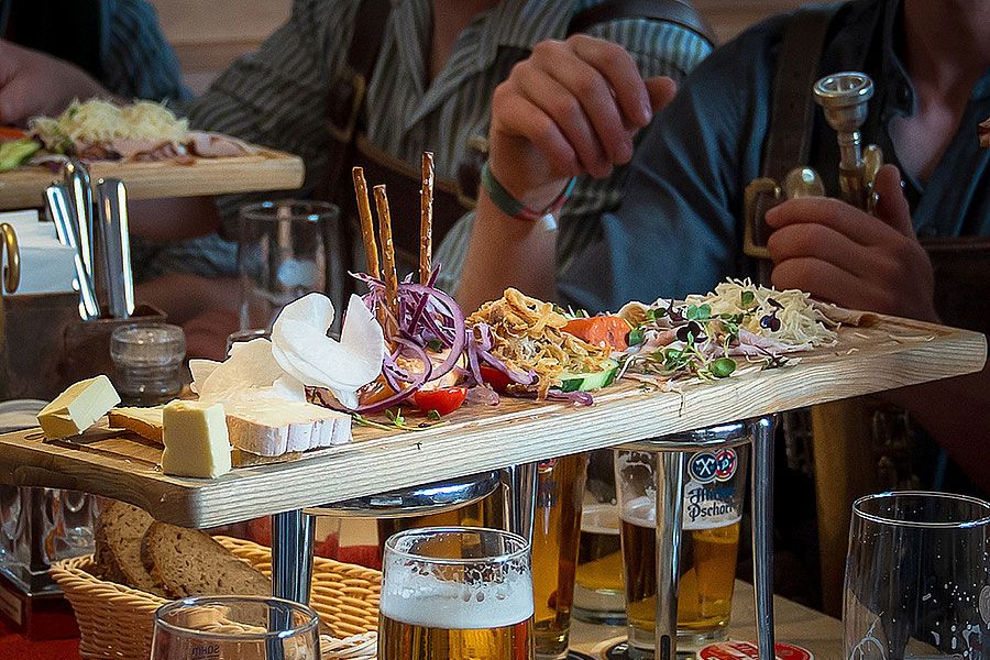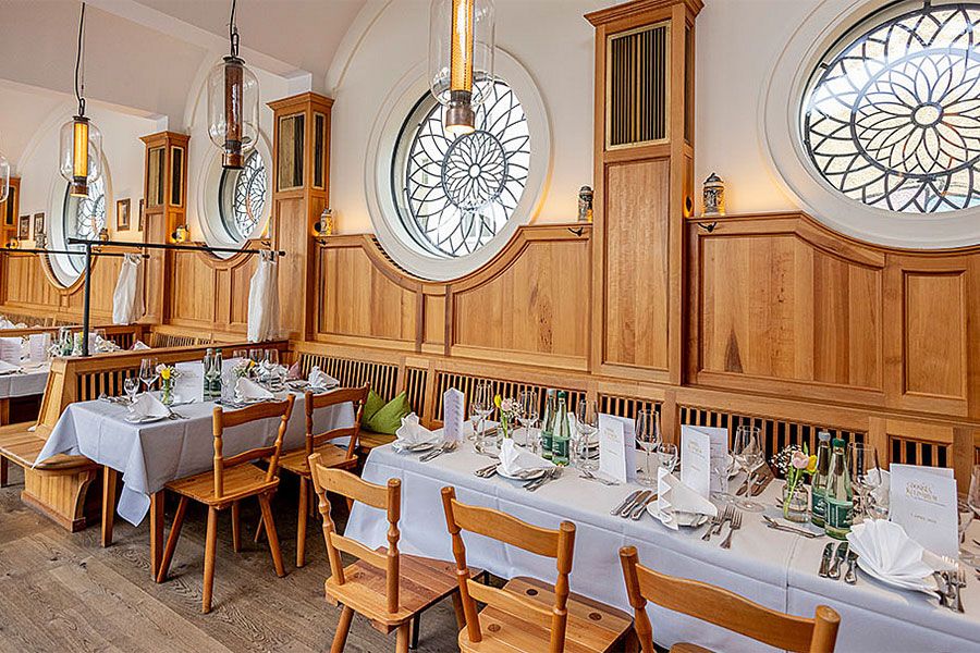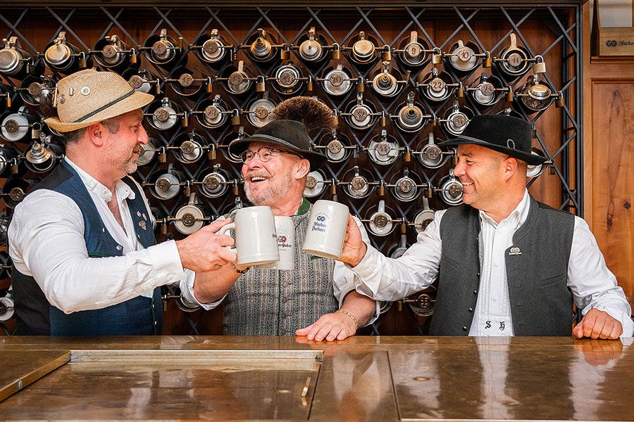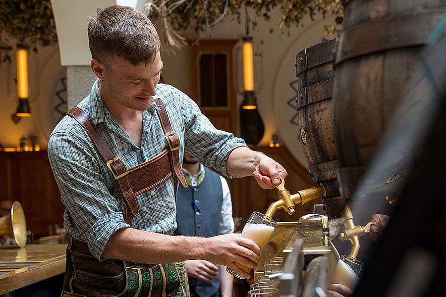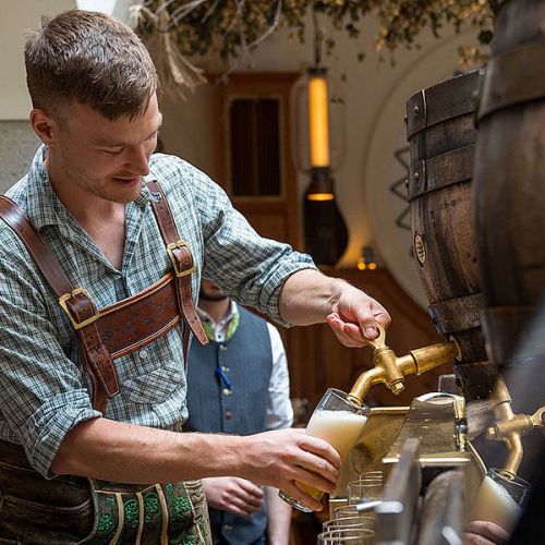 In den einzigartigen Räumlichkeiten genießen die Gäste hochwertiges Hacker-Pschorr Bier aus Holzfässern und dazu typisch bayrische und u.a. auch altmünchner Gerichte.