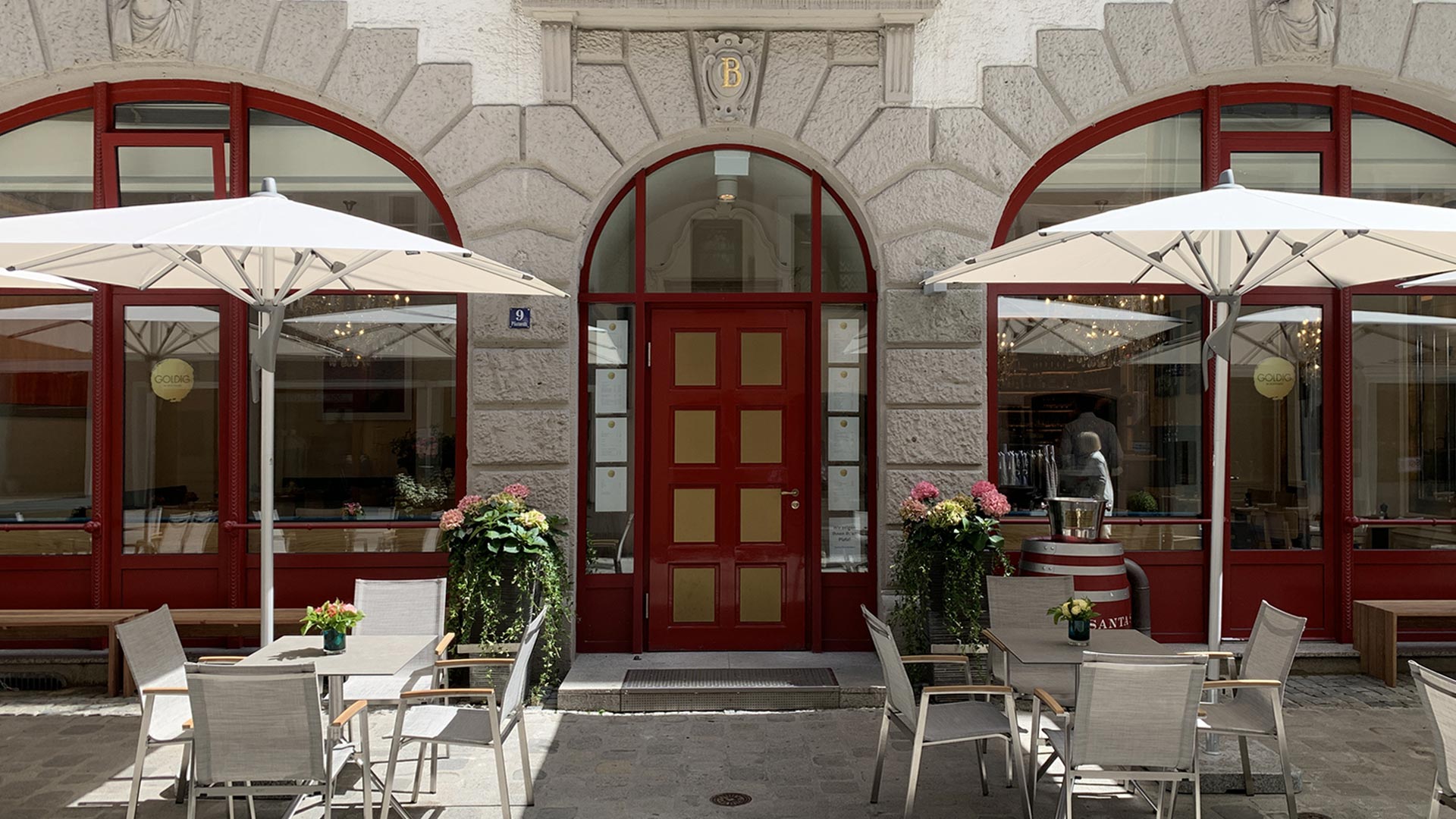 Es ist ein großer Name: Das Boettners, anno 1901 gegründet, galt als eines der feinsten Restaurants der Stadt. Noch heute erinnern die üppigen Stuckdecken mit den prächtigen Kronleuchtern an längst vergangene Zeiten. Seit Sommer 2020 weht ein sympathisch frischer Wind im traditionsreichen Restaurant, das achtsam modernisiert wurde – mit warmen Holztönen, urbanem Chic, ausgesuchten Accessoires und auch ein wenig goldenem Glanz. Jetzt heißt das hübsche Lokal am Platzl Goldig im Boettners. Serviert wird mediterrane, vor allem italienische Küche, mal klassisch, mal neu interpretiert. Ausgesuchte Weine runden den kulinarischen Genuss ab. An der Bar gibt es Cappuccino oder auch perlenden Champagner – bei schönem Wetter auch draußen auf der schönen Terrasse.