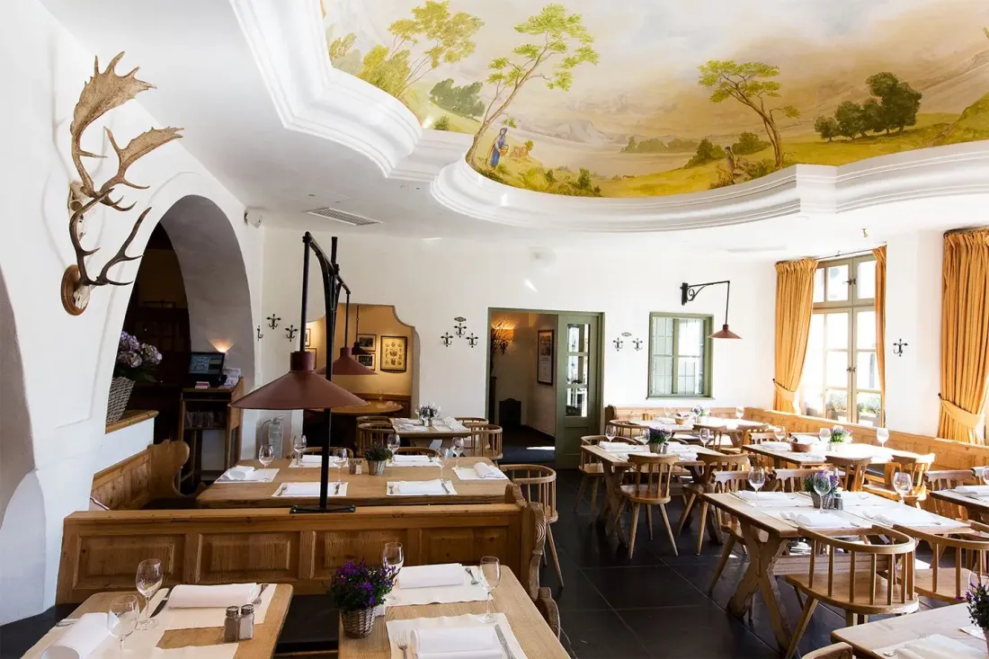 Die Lage am Max-Joseph-Platz ist prominent: direkt gegenüber der Bayerischen Staatsoper. Diesen schönen Anblick hat man von den Fensterplätzen des Spatenhauses und auf dessen Terrasse, doch auch sonst gibt es in diesem Traditionsrestaurant viel zu sehen und zu genießen. Im gepflegten Gasthaus im Erdgeschoss geht es gradlinig bayerisch zu. Neben vor allem regionalen Spezialitäten sind hier auch Schmankerl aus der Würstlküche im Angebot. Im Obergeschoss ist das Spatenhaus, das die Spatenbrauerei 1896 erworben hat, erklärtermaßen ambitioniert und üppig – was für Ambiente und Kulinarik gleichermaßen gilt. So stehen in den schmucken Restaurant-Räumen und -Stüberln neben bayerischen Klassikern mit internationalen Einflüssen beispielsweise auch Gillardeau Austern zur Wahl.