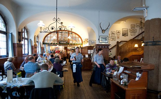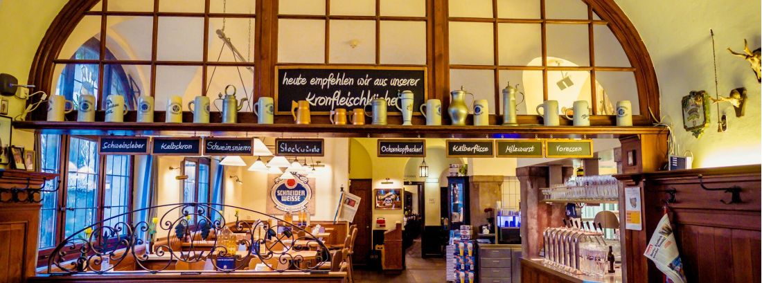 Das Weisse Bräuhaus im Tal gehört zu den traditionsreichsten bayerischen Wirtshäusern und ist eine Münchner Institution. Vor über 150 Jahren wurde hier von Georg Schneider I. das erste „bürgerliche Weissbier“ gebraut. Zuvor hatte es nur dem Adel zugestanden, dieses zu trinken. Schneider Weisse ist längst Kult, das Schneider Bräuhaus bis heute das Stammhaus der unabhängigen Familienbrauerei in sechster Generation. In der Schwemme, die quasi das Wohnzimmer vieler Stammgäste ist, sitzt man an den typisch dunklen Holztischen beisammen, trinkt sein Bier und genießt bayerische Schmankerl. Hierzu gehört auch original Münchner Kronfleischküche, die nur noch sehr selten angeboten wird. Authentische Wirtshaus-Atmosphäre gibt es auch in den gemütlichen Stuben im Obergeschoss.